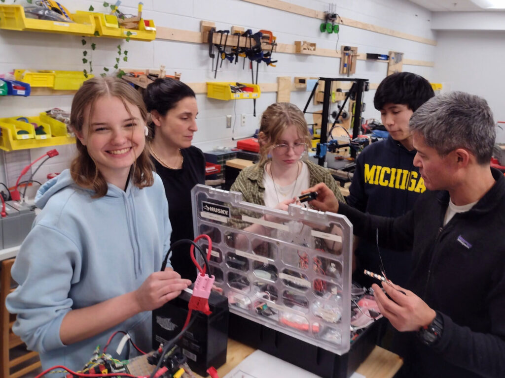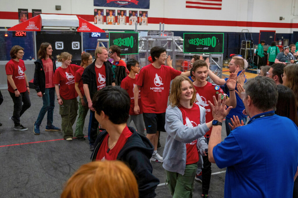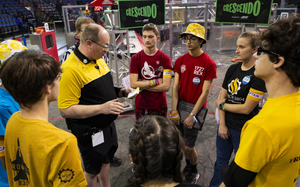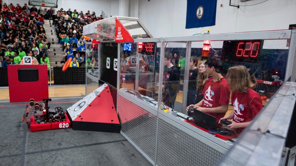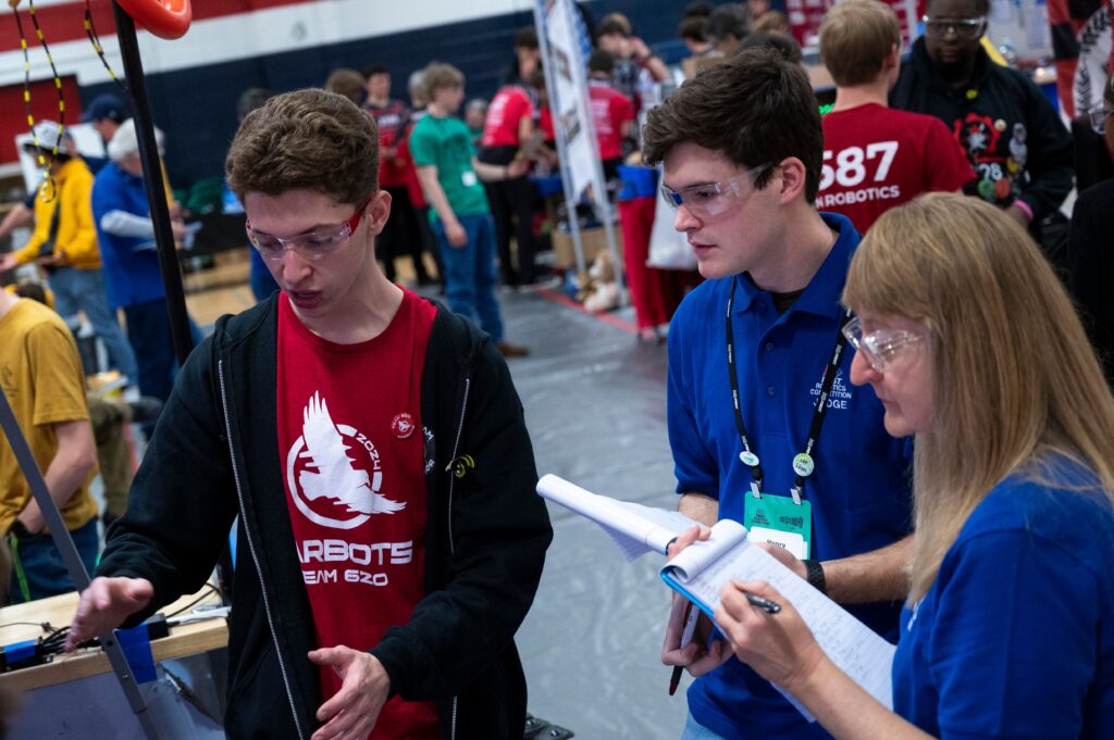 Students work with the help of industry mentors to design and build a new robot from the ground up