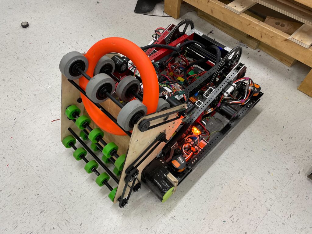 For the 2025 season, our robot Dory used an elevator connected to a wrist to manipulate both coral and algae. Our robot used set points in order to make our cycle times more efficient. LEDs allowed our drive team to see when and what type of game piece was in the robot. Utilizing visualization software helped us create multiple autonomous programs.
